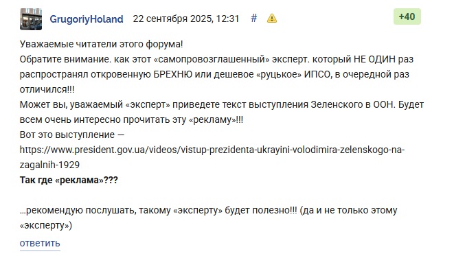 Продолжаем рассматривать комментарии известного на форуме патриота —