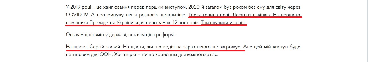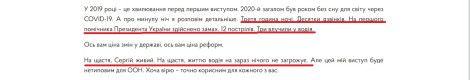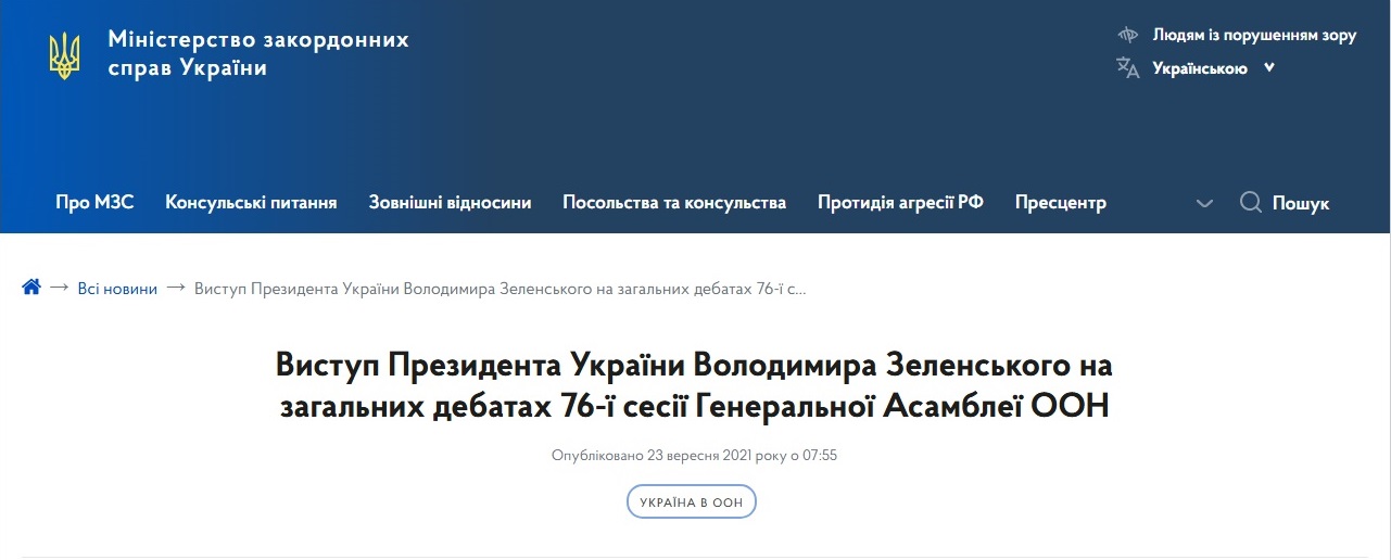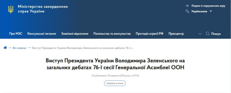 Теперь рассмотрим текстовую версию выступления Президента Украины, размещенную на сайте Министерства Иностранных Дел Украины —