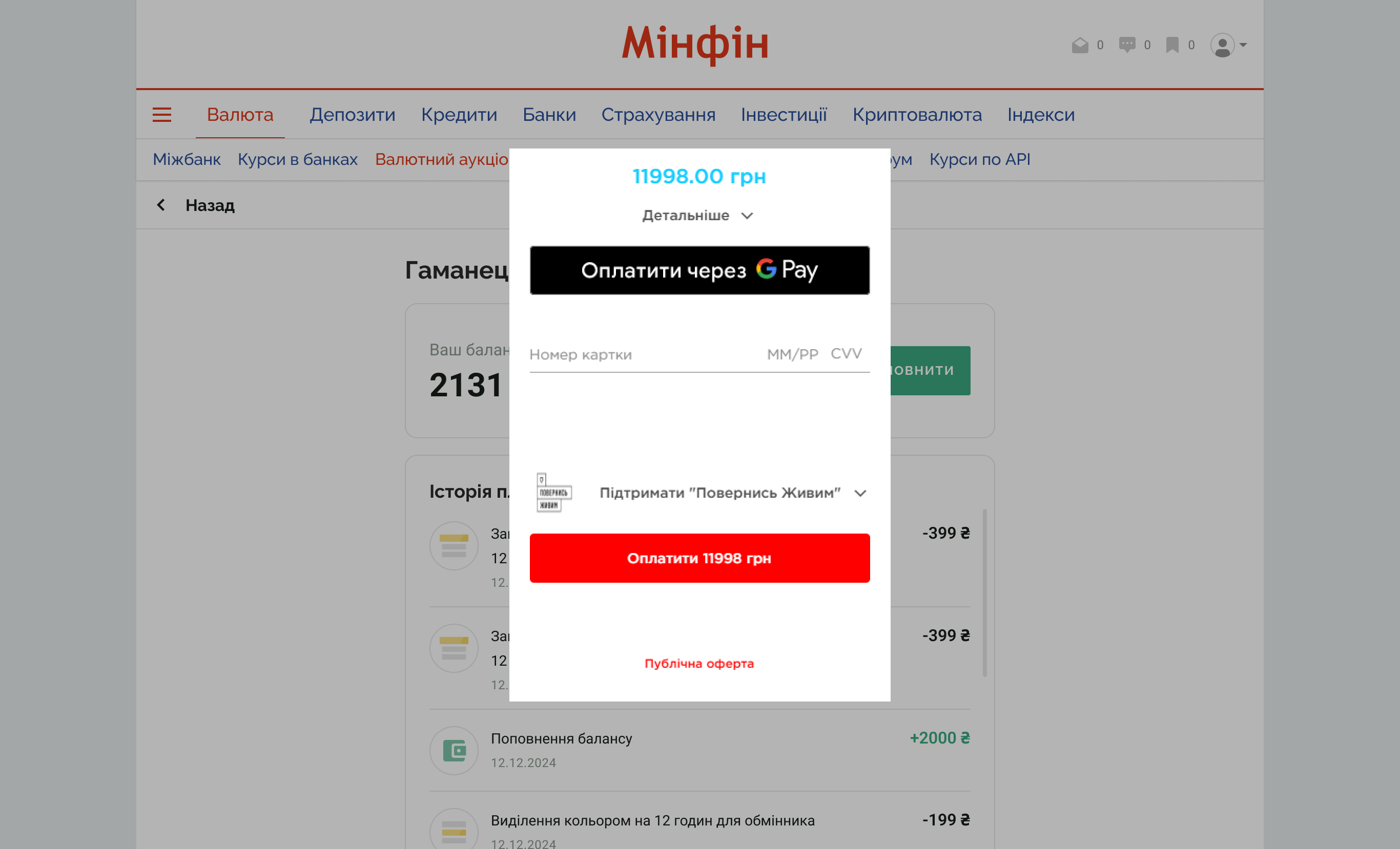 - усі транзакції фіксуються в розділі «Історія платежів»;