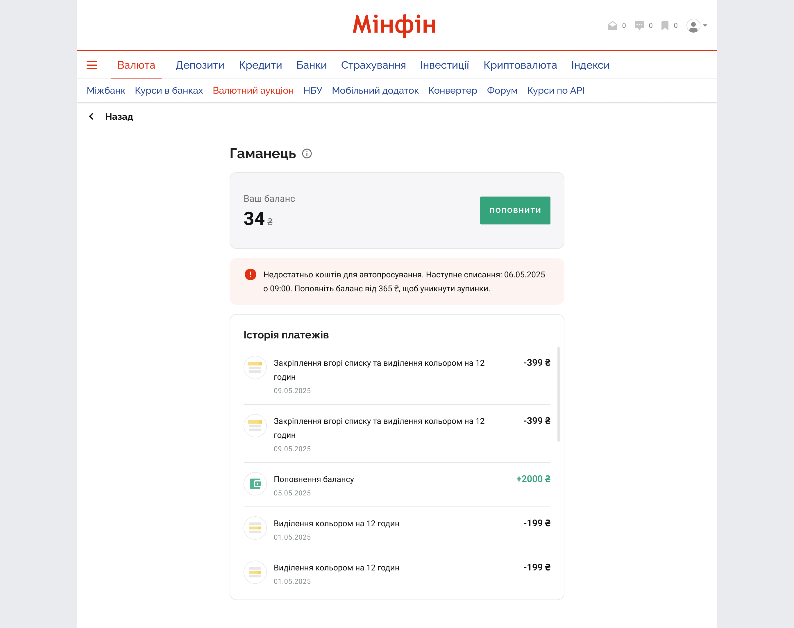 За численними запитами наших партнерів-обмінників ми створили новий інструмент — гаманець для оплати мікропослуг на валютному аукціоні Мінфіну.