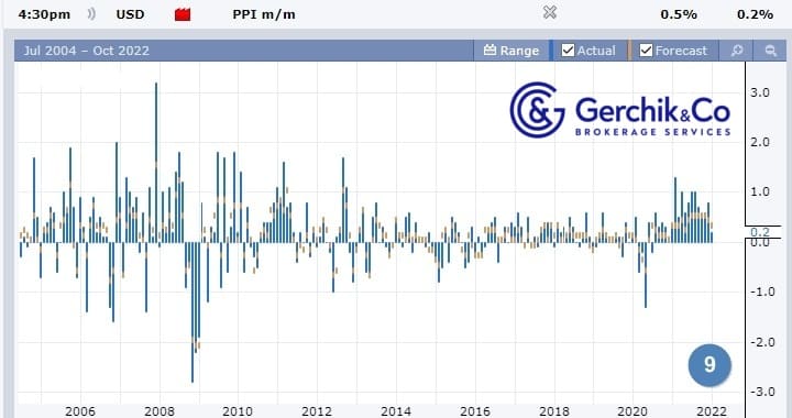 Ближе к открытию регулярной торговой сессии в США станет известен еще один косвенно подтверждающий инфляцию показатель — цифры PPI за месяц (изменение цен на готовые товары и услуги, реализуемые производителями).