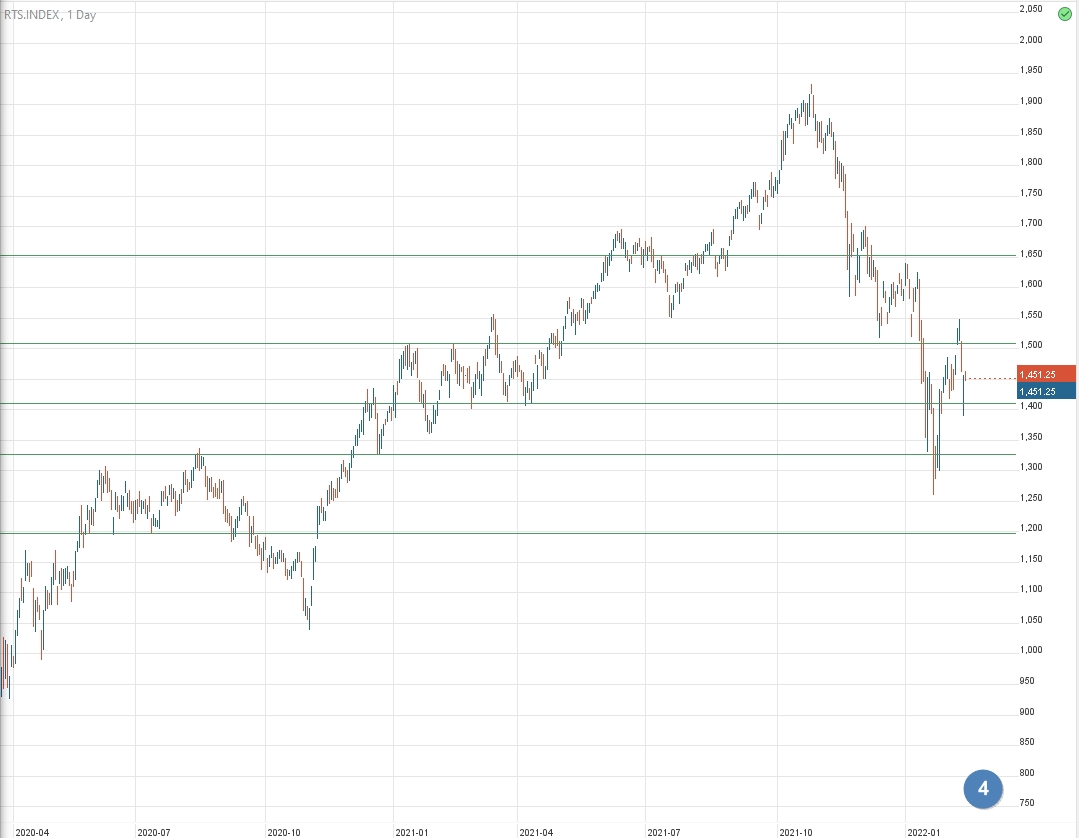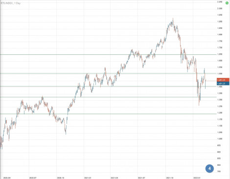 Индекс РТС остается в диапазоне 1 400-1 500, обозначенном в предыдущих обзорах российского рынка, не сумев закрепиться выше круглой отметки 1 500.