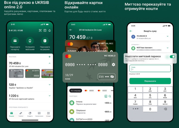 У мобільному застосунку UKRSIB online 2.0 клієнтам доступні функції: