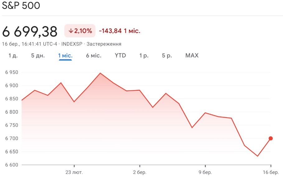 Одна з причин нинішньої відносної сили біткоїна полягає в тому, що він увійшов у фазу різкого розпродажу раніше за фондовий ринок і встиг частково «переварити» шок ще до того, як тиск повною мірою перекинувся на акції. Інакше кажучи, перша криптовалюта відреагувала на ескалацію жорсткіше й водночас значно швидше, тоді як американські індекси лише почали повноцінно закладати нові ризики в ціни.