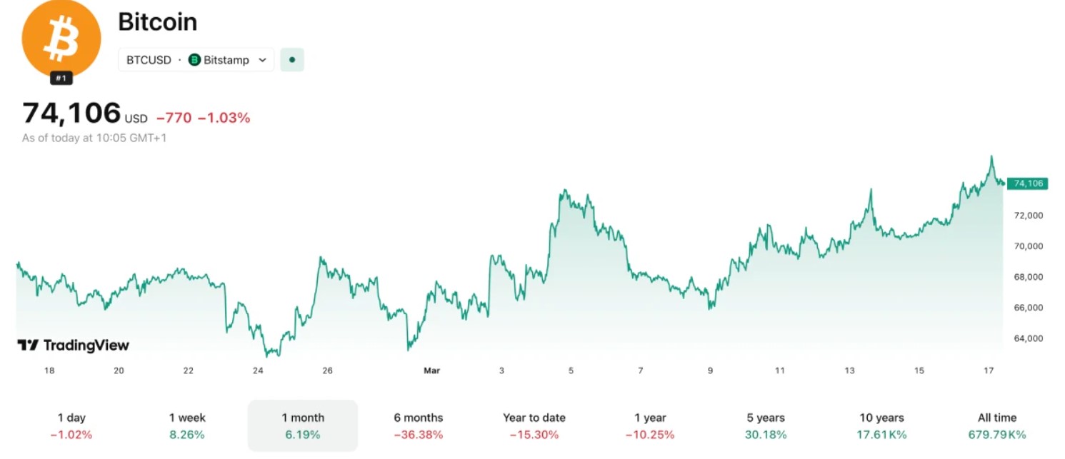 Рівень $74 000 наразі знаходиться в полі зору ринку як найближча зона перевірки для цього руху. Сам факт повторного тесту цієї зони після лютневого спаду та додатковий тест рівня $76 000 уже свідчать про те, що біткоїн поводиться стійкіше, ніж раніше в подібних ситуаціях. Однак лише здатність закріпитися вище цих рівнів і утримати ініціативу покаже, чи йдеться лише про сильне березневе відновлення, чи про формування стійкішого висхідного етапу.