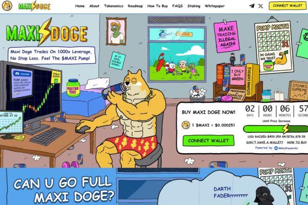 Maxi Doge ($MAXI) — мемкоін на базі Ethereum, створений для спільноти трейдерів, натхненних культурою високоризикових торгів з левериджем до 1000x. Проект поєднує меми, стейкінг і торгові конкурси, з акцентом на вірусний маркетинг і залучення спільноти. Пресейл, що розпочався 29 липня 2025 року, зібрав зараз $440 427, а вартість токена становить $0,000251.