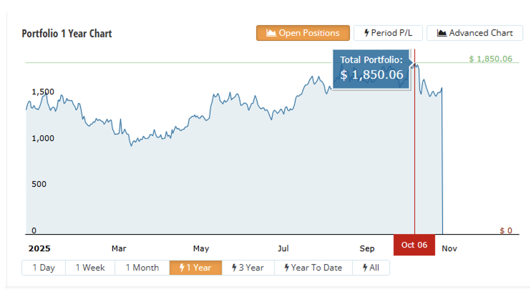 Найкращий результат фундаментальна частка портфелю показувала 6 жовтня, плаваючий прибуток того дня сягав 64% ($723).