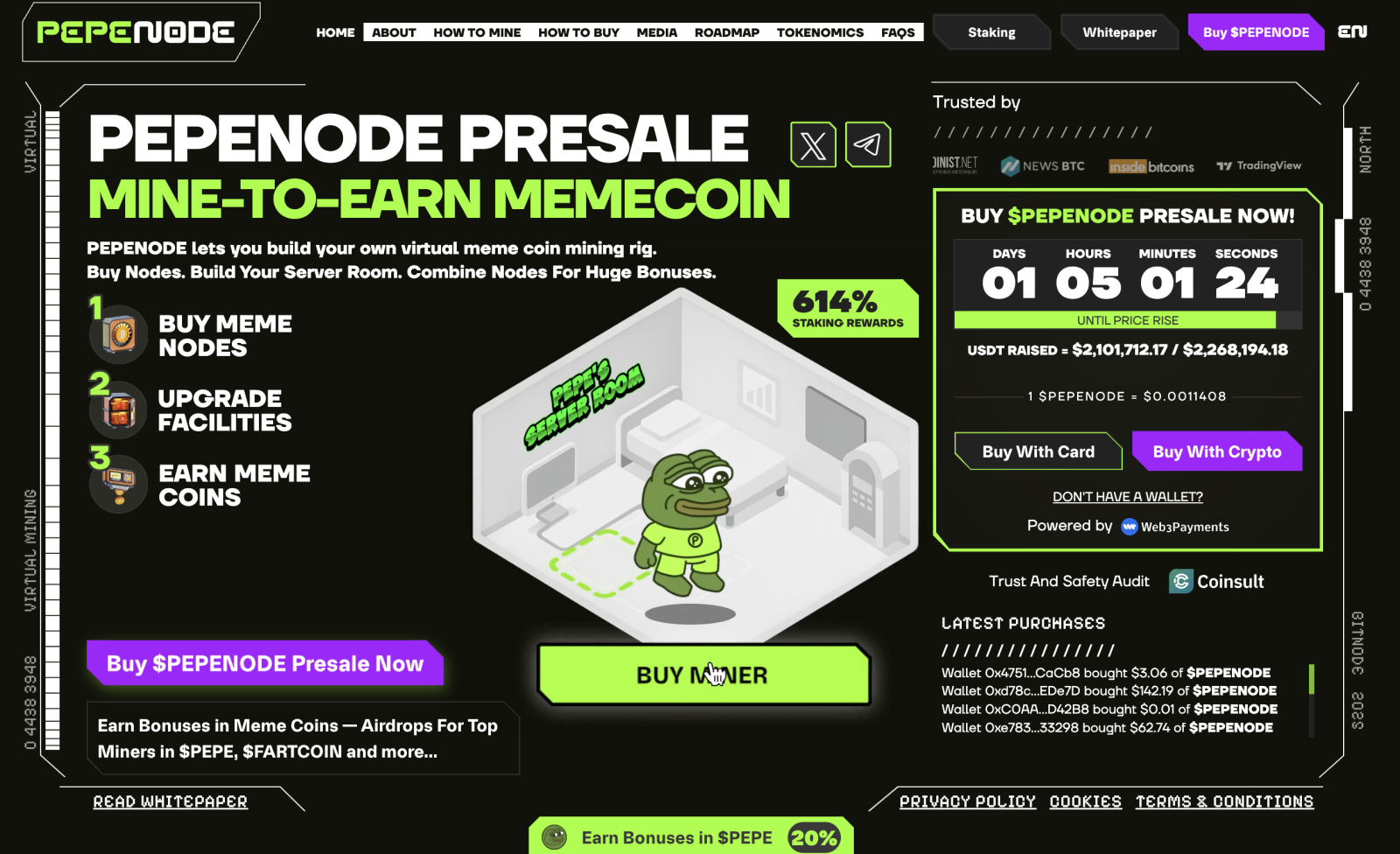 Крипта, яка робить інфраструктуру не нудною. PepeNode поєднує гейміфікацію і розподілені обчислення: користувачі діляться потужностями і отримують нагороди токенами. Все це упаковано в легкий формат завдань і квестів. Такий підхід залучає спільноту до розвитку мережі не через нудні апдейти, а через гру. У 2025-му це одна з найбільш обговорюваних екосистем на стику DeFi і Web3-геймінгу.