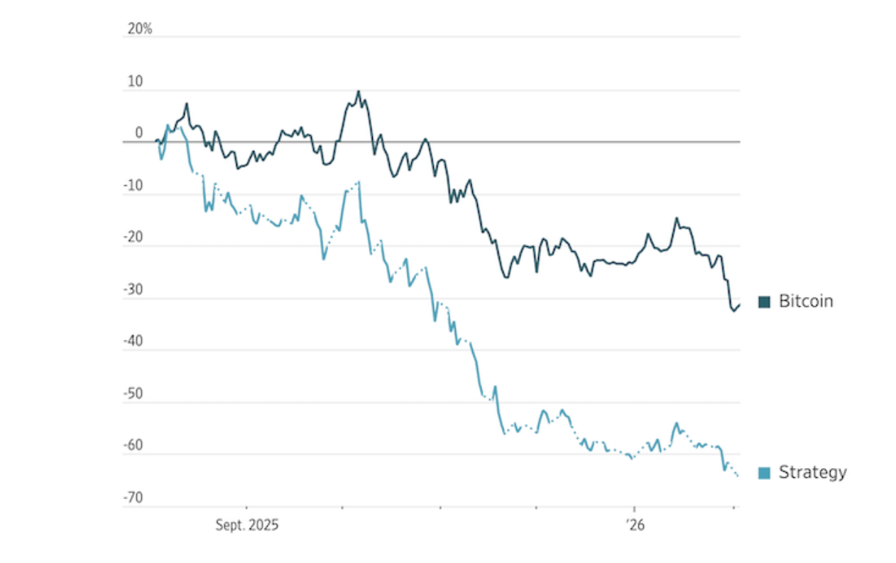 Стратегія, яка ще нещодавно заохочувала компанії накопичувати криптовалюти, тепер працює проти них. Біткоїн, ефір та інші цифрові токени дешевшають, а разом з ними знижуються й акції компаній, які пішли шляхом Strategy — колишньої MicroStrategy — і зробили ставку на корпоративне накопичення криптовалют. Розпродаж тримає інвесторів у напрузі: ринок стежить, чи не призведе тиск до того, що великі власники почнуть продавати активи, посиливши падіння. Про це пише Wall Street Journal.