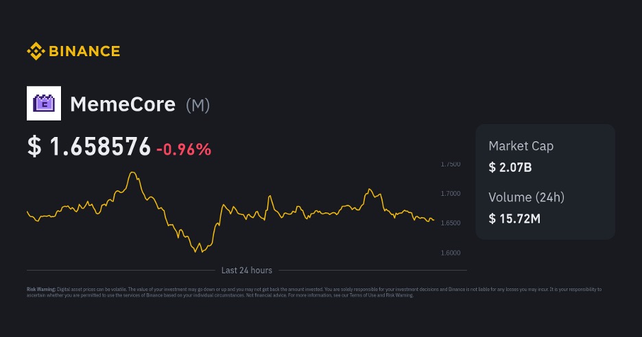 - MemeCore (мільйони доларів)-1,7 млрд доларів СШАринкова капіталізація → ключовий каталізатор: зростання та впровадження екосистеми L1 → очікуване зростання: 2−4x
