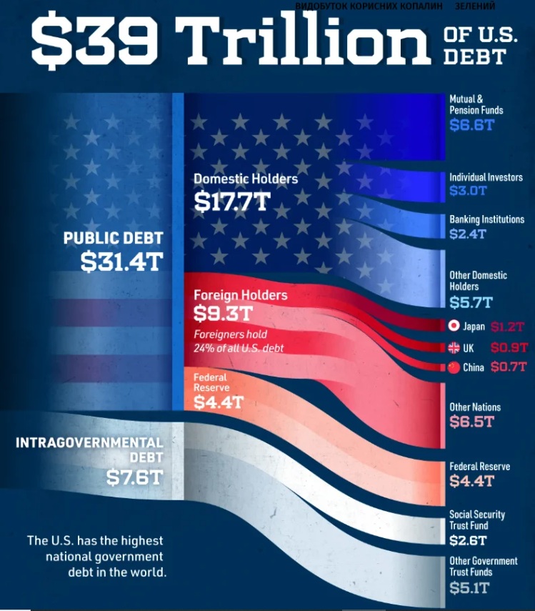швидке зростання держборгу США, що зберігається. Станом на квітень 2026 року загальний держборг Америки перевищив $ 39 трлн. Причому лише за останній рік він зріс на понад $2 трлн. Така динаміка збільшує вартість обслуговування держборгу (сума вже перевищує військовий бюджет США) та посилює соціальну напруженість у Штатах, оскільки в уряду залишається дедалі менше грошей на соціальні програми.