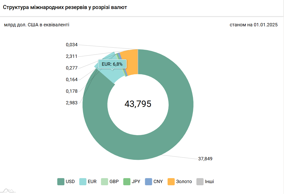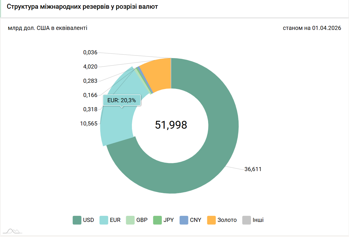 Суми фінансової допомоги також надходитимуть в євро. Це продовжуватиме підтримувати високу частку євровалюти в українських резервах Нацбанку протягом щонайменше 2026−2027 років.