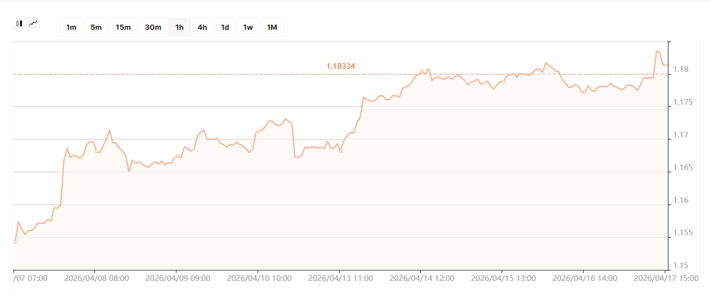 Графік поведінки пари євро/долар із початку квітня