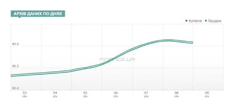 Коридор цінників купівлі та продажу за готівковим доларом у банках буде в межах від 42,70 до 43,70 гривень, а в обмінниках — в межах від 42,80 до 43,60 гривень.