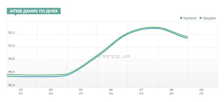 Але з урахуванням політики Нацбанку щодо згладжування надмірних коливань, коридор за безготівковим євро на торгах з 12 по 16 січня буде в межах від 49,80 до 50,65 грн за євро. Нацбанк намагатиметься не допустити більш значного подорожчання євро в цей період, штучно притискаючи курс долара до гривні на міжбанку в тому випадку, якщо євро буде значно зростати на зовнішніх ринках.
