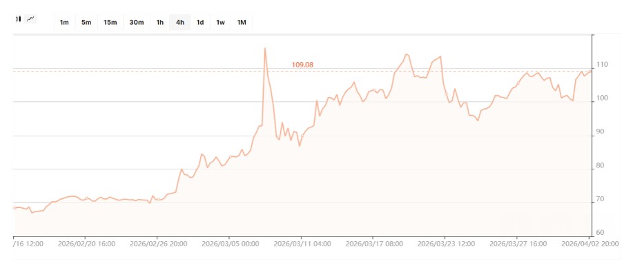 Графік вартості нафти BRENT у березні-початку квітня 2026 року