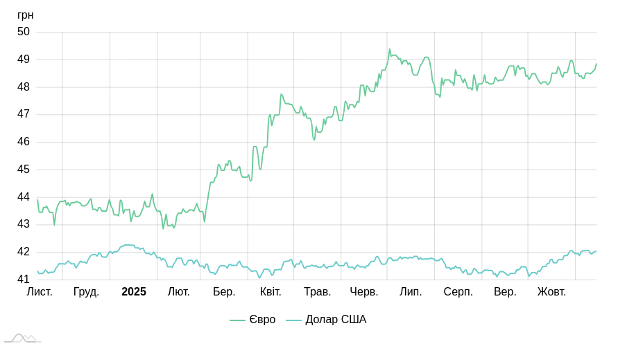 Нагадаю, що до держбюджету на 2025 рік уряд заклав середній курс на рівні 45 грн/долар та 45,6 гривень за долар — на грудень. НБУ не зобов'язаний брати до уваги ці цифри під час проведення валютної та монетарної політики, але й ігнорувати зовсім розрахунки уряду Нацбанк також не може. Тобто найближчим часом «долара по 50» чекати не варто.