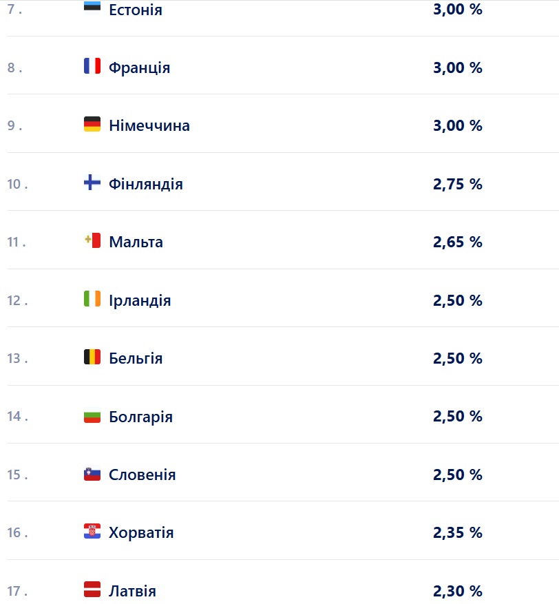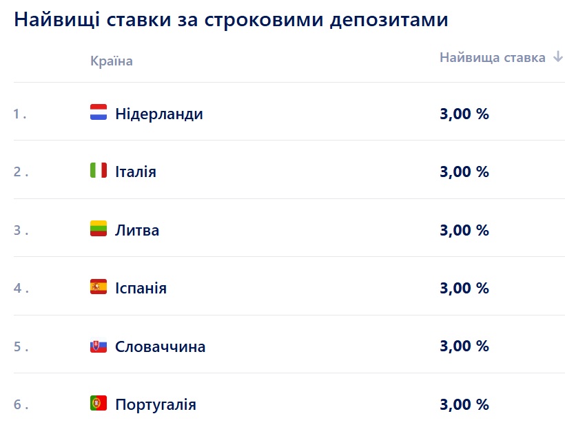 Водночас у деяких країнах дохідність вкладів є суттєво нижчою. Наприклад, у Люксембурзітана Кіпрі. Але вкладники можуть знайти й набагато вигідніші пропозиції, скажімо, в банкахІталії, Литвита Іспанії.