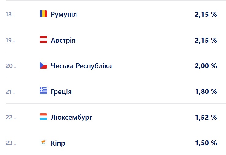 | Кліринговий Дім | - | - | 1,75% | - | 1,75% | - | 1,30% | - | - | - |