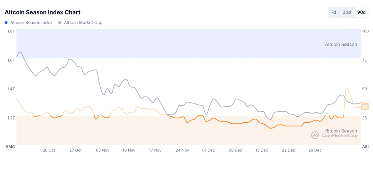 На початку січня 2026 року Altseason Index різко виріс і наблизився до 50 — це найвище значення за останні три місяці.
