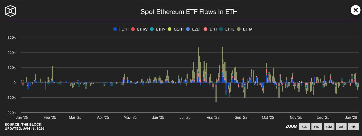 Цю зміну добре ілюструє динаміка інституційних потоків: рух коштів у спотові Ethereum-ETF став ще одним фактором, який почав напряму впливати альтринок.