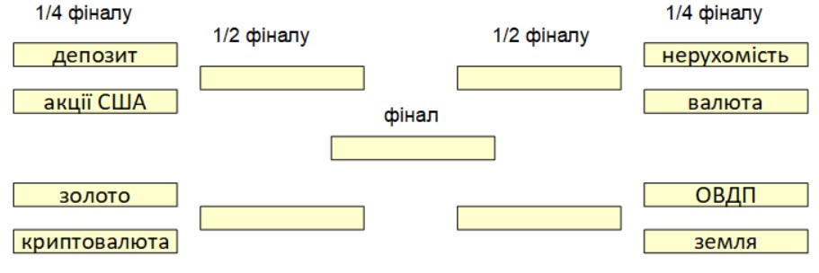 «Мінфін» оголошує незвичне змагання. У ньому братимуть участь найпопулярніші серед українців інвестиційні інструменти. Ми розбиратимемо їхні сильні та слабкі сторони, а наші читачі за результатами голосування визначатимуть, які активи вважають найкращими.