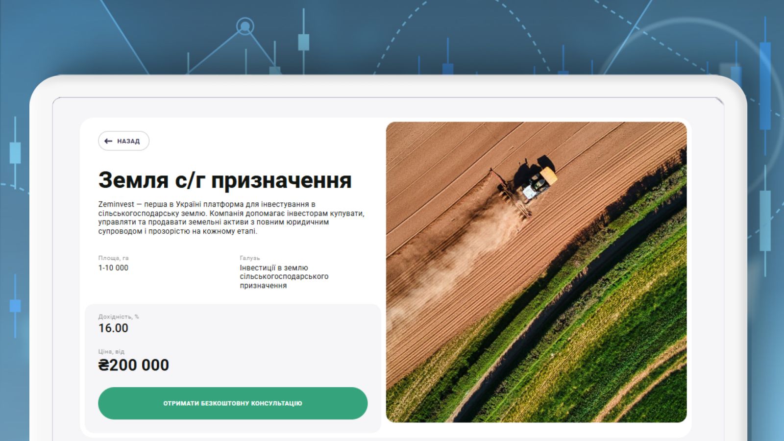 Сільськогосподарська земля — один із надійних активів у портфелі інвестора. Придбати його із повним супроводом можна за допомогою платформи Zeminvest. Компанія спеціалізується на професійній допомозі інвесторам на етапах купівлі, управління та продажу земельних активів.