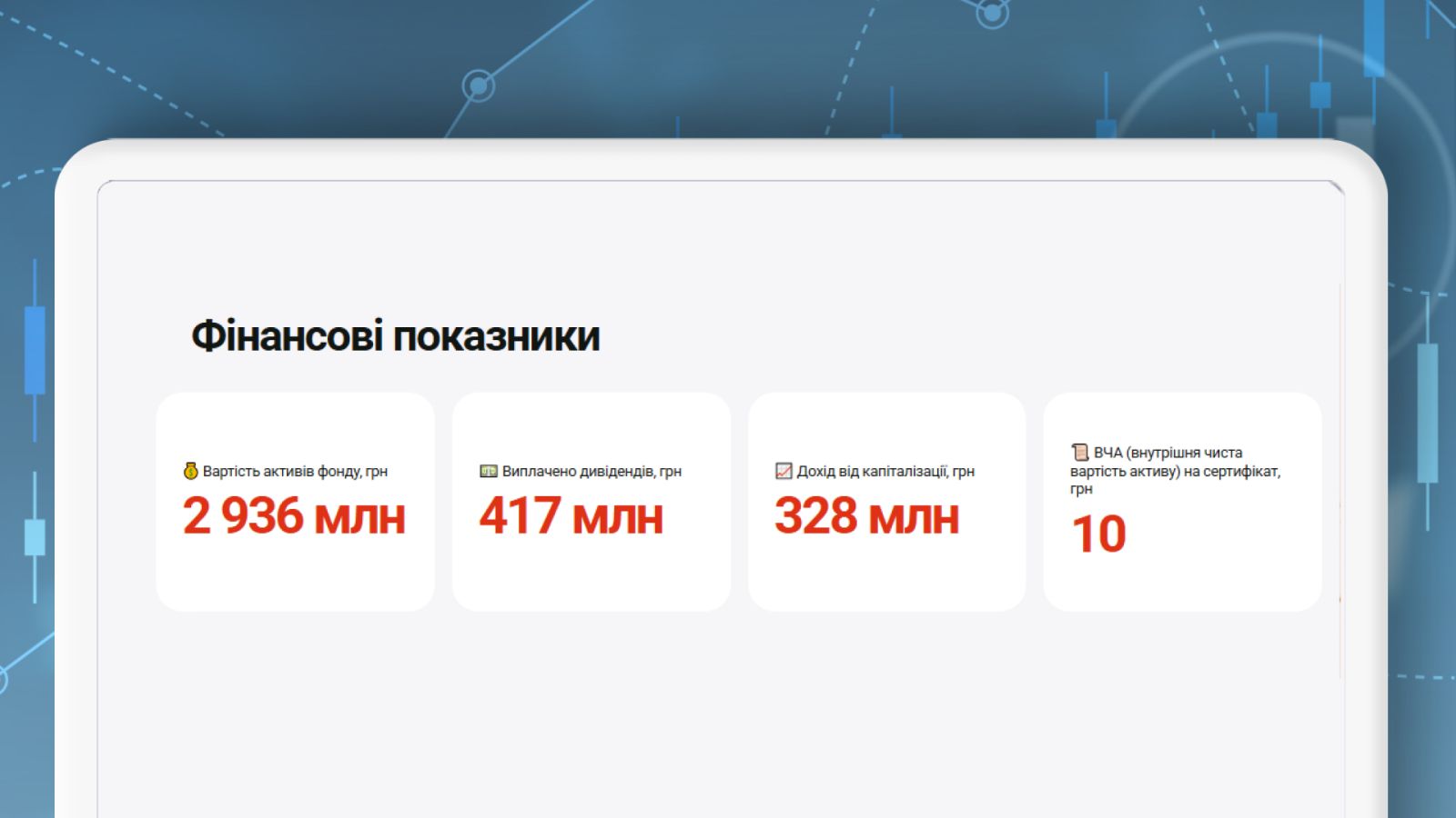 Дивіденди інвесторам виплачуються щомісяця, відповідно до кількості придбаних сертифікатів. А сама інвестиція є повністю пасивною. Додатково вкладники заробляють на зростанні вартості об'єктів — загальний дохід від капіталізації вкладників фонду становить вже 328 млн грн. Загалом фонд об'єднує понад 11 тис. співвласників, які володіють активами на майже 3 млрд грн.